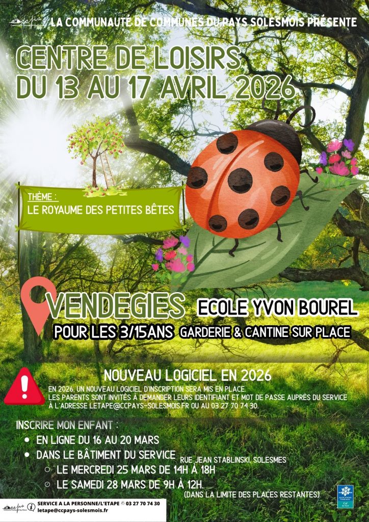 La Communauté de Communes du Pays Solesmois organise pendant les vacances scolaires, des accueils pour les enfants du Pays Solesmois, mais aussi pour les petits enfants des habitants du territoire et ceux des personnes y travaillant. Les enfants sont encadrés par une équipe diplômée.