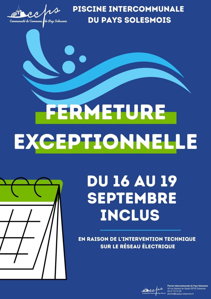 Réservation : piscine@ccpays-solesmois.fr | 03 27 70 74 30